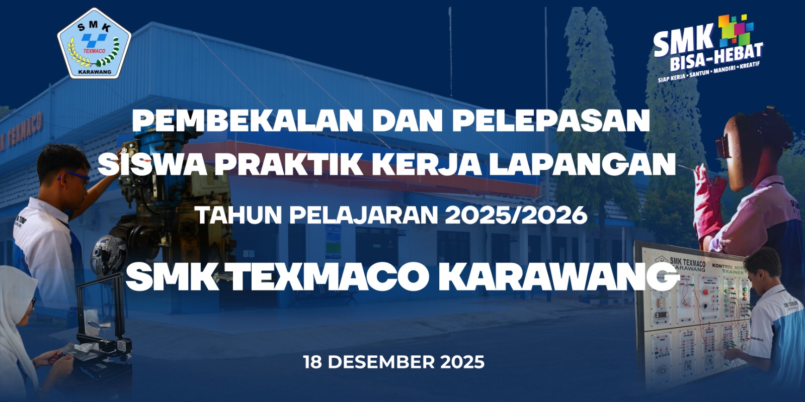 Kamis, 18 Desember 2025 SMK Texmaco Karawang mengadakan kegiatan Pembekalan sekaligus Pelepasan Siswa dalam rangka kegiatan Praktik Kerja Lapangan Tahun Pelajaran 2025/2026 yang bertempat di Aula SMK Texmaco Karawang.