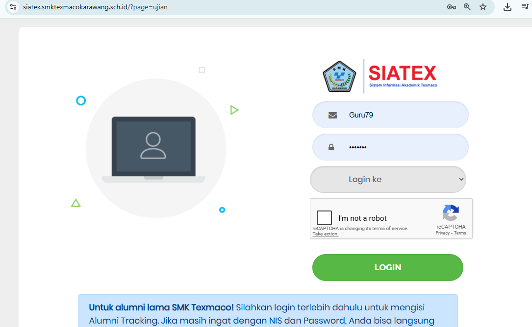 SIATEX, yakni Sistem Akademik Texmaco dimana siswa melakukan asesmen menggunakan SIATEX dengan cara log-in menggunakan username dan password masing-masing setiap peserta yang hanya bisa di akses oleh siswa. Serta memasukan kode ujian sesuai mata pelajarannya dan dikerjakan berbasis android.